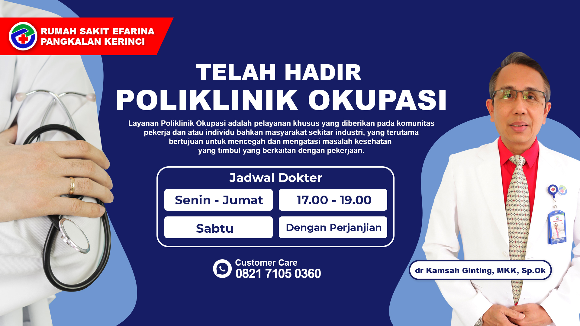 Tidak hanya terdiri dari tenaga yang profesional dan berpengalaman, kami juga siap melayani dan membantu semua keluhan kesehatan anda. Selama lebih dari 8 tahun melayani masyarakat daerah Pangkalan Kerinci, kami yakin dan mampu mempertahankan setiap kualitas pelayanan sebagai kebanggaan terbesar kami.